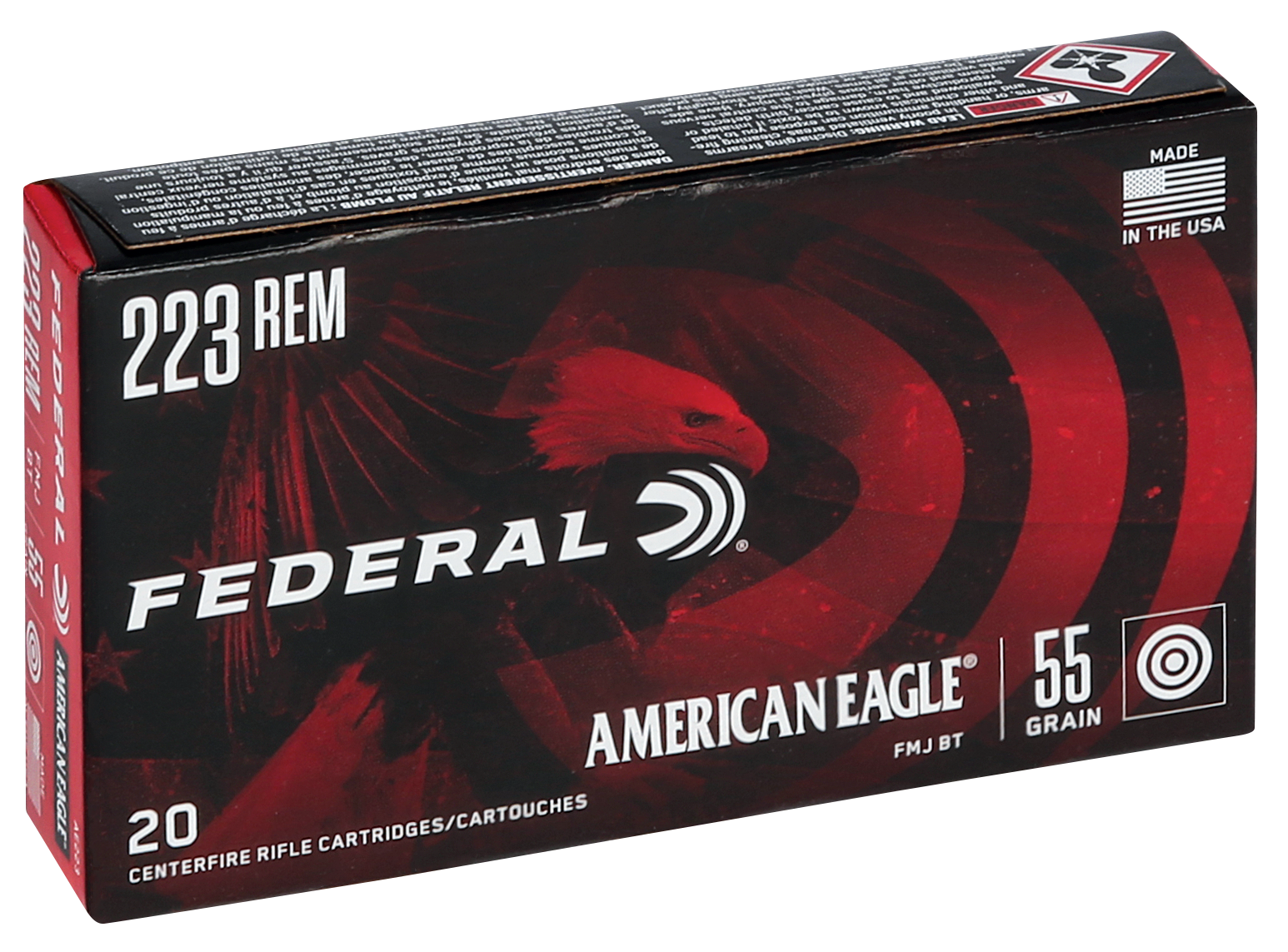 Federal AE223 American Eagle Rifle 223 Rem 55 gr Full Metal Jacket Boat Tail 20 Round Box