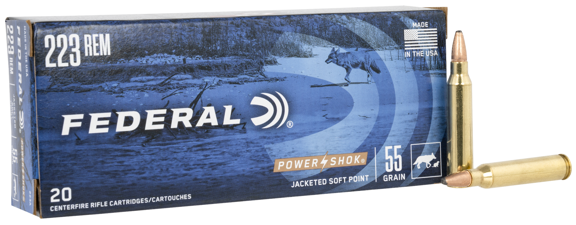Federal 223A Power-Shok 223 Rem 55 gr Jacketed Soft Point 20 Round Box